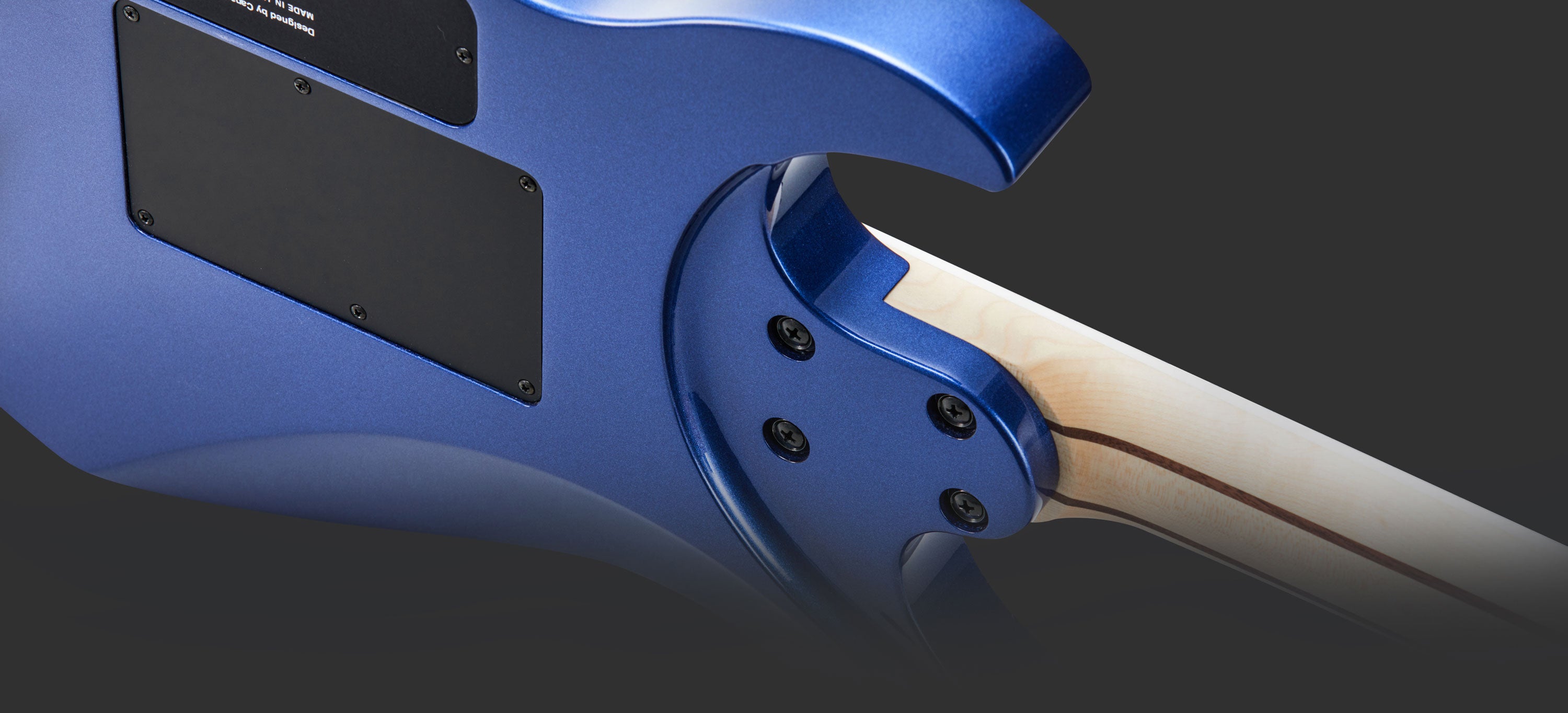 The traditional Mahogany body has been replaced with Australian Blackwood, resulting in a sound that boasts a broad tonal range, rich sustain and a pronounced fundamental. To enhance the low-mid spectrum, Caparison has applied their unique "Pro.Black" finish to the headstock, which enhances frequencies that are essential for a 7-string guitar.