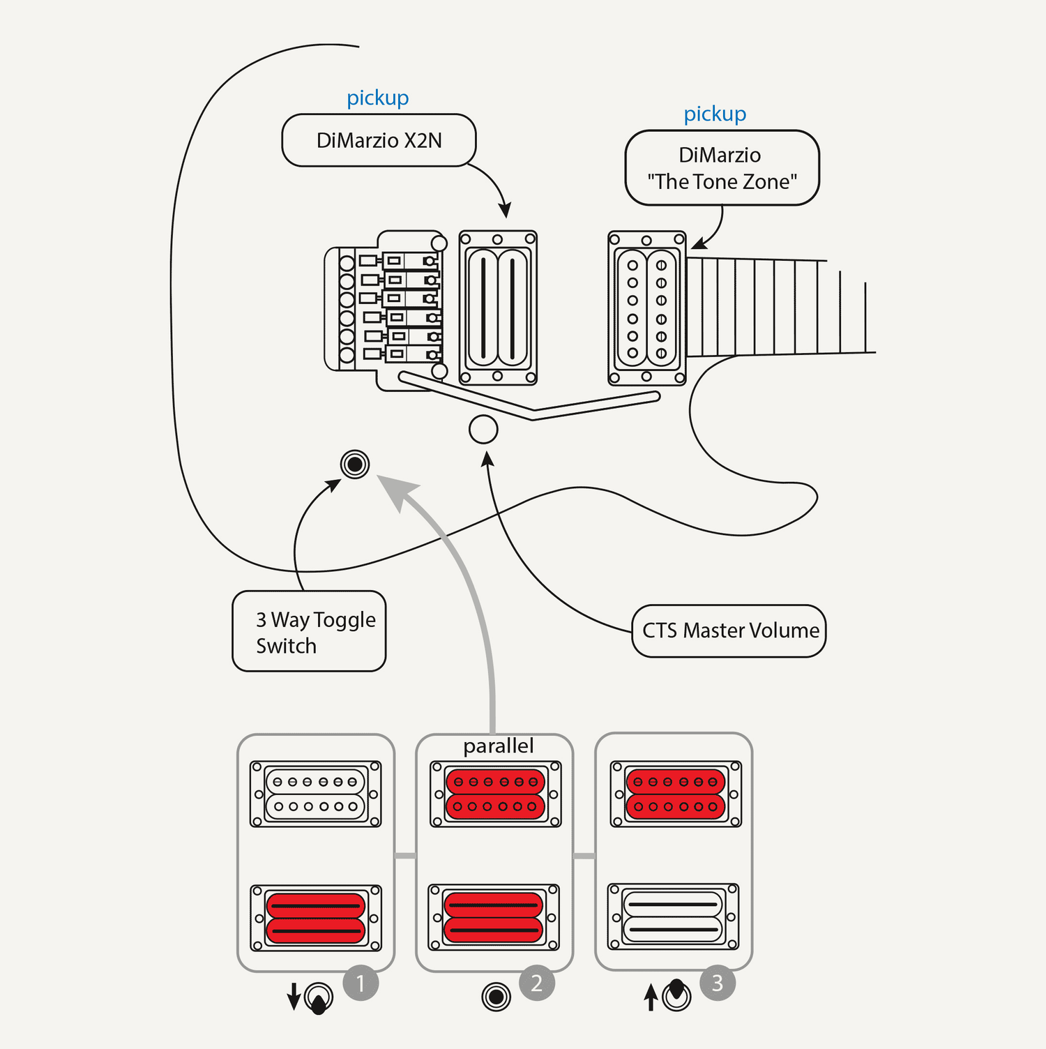 The Dellinger Prominence-MJR also features the Caparison “M3” composite tone wood body construction, which consists of a central Maple section sandwiched between two Mahogany sides, the neck bolts directly to the Maple section. The result is a balanced sound with focused low frequencies and rich sustain. The Dellinger Prominence-MJR also now features a 5-piece Maple and Walnut neck for ultimate stability.