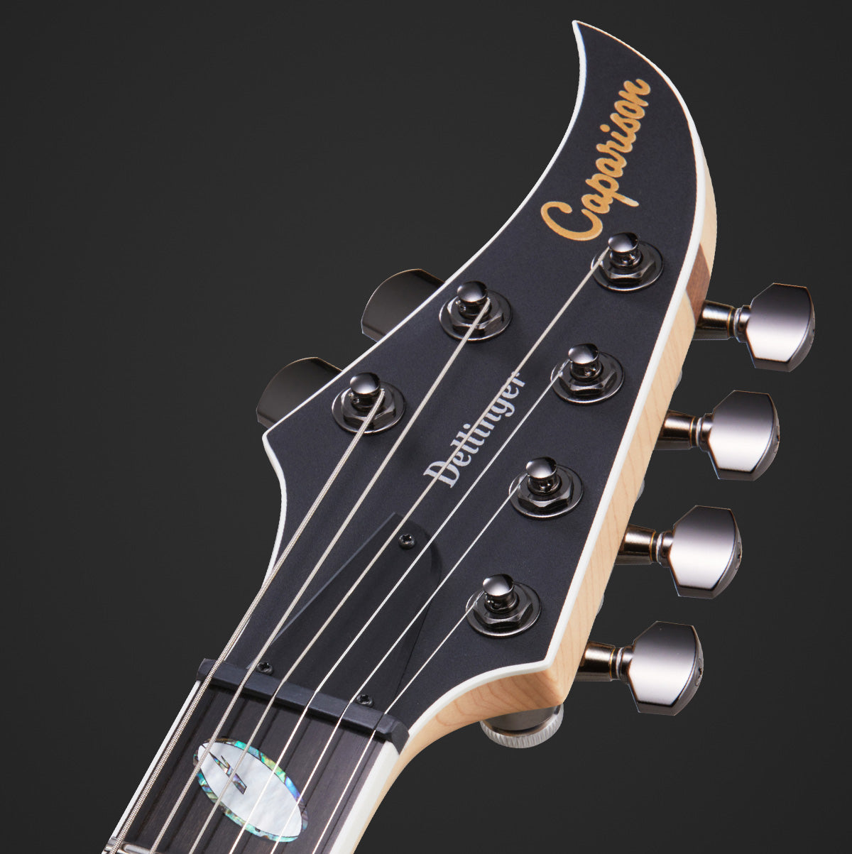 The inclusion of Jescar stainless steel jumbo frets further enhances the discernible clarity. The new Dellinger-WB-FX also features the unique Caparison designed high mass ‘Fixed Bridge6’ which effortlessly deals with a variance of string gauges and extreme tunings while maintaining stability and sonic reinforcement. This stability is further enhanced by the use of Gotoh MG-T locking tuners and a Graph Tech Black TUSQ nut.