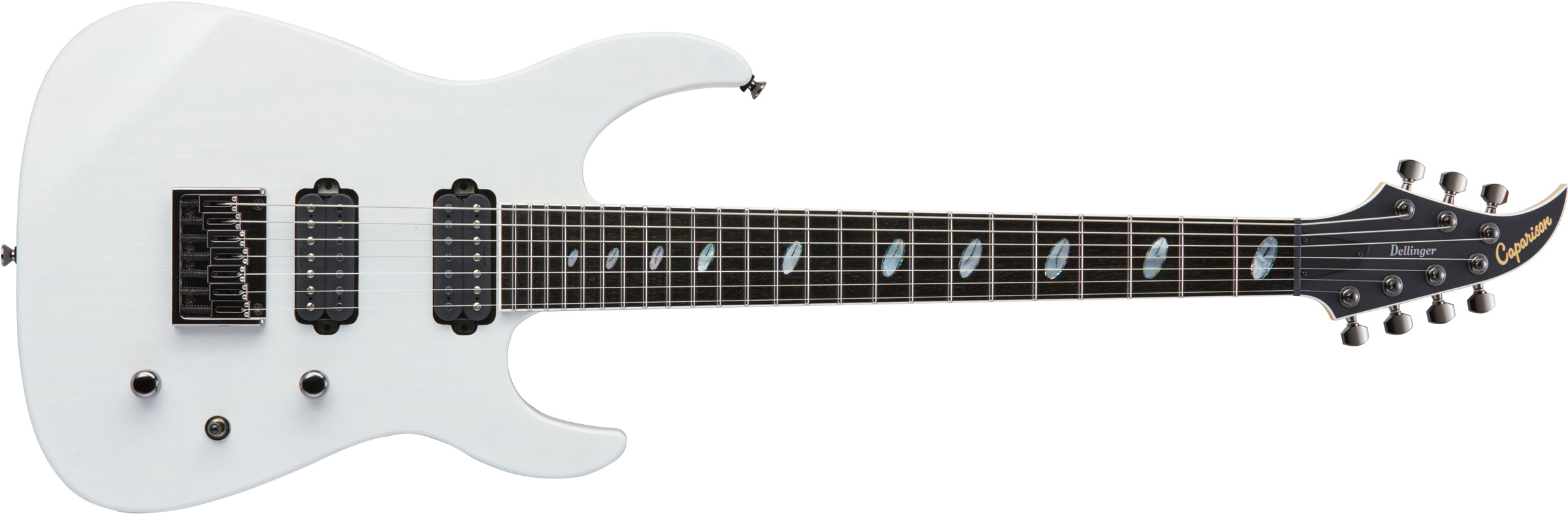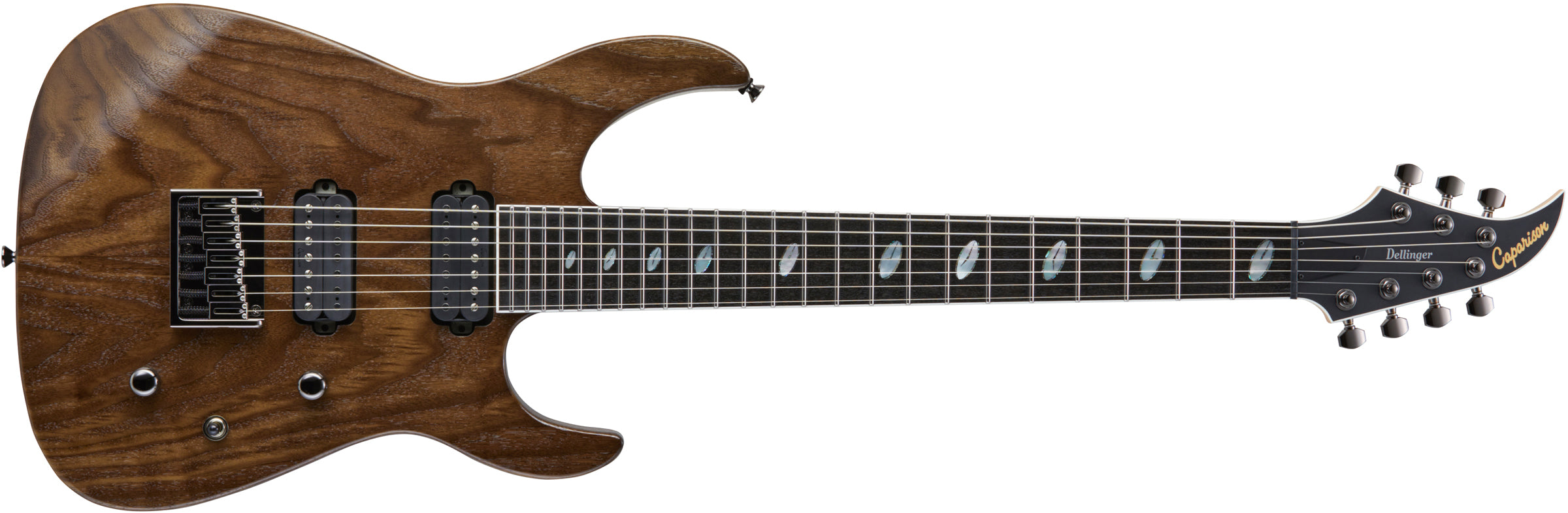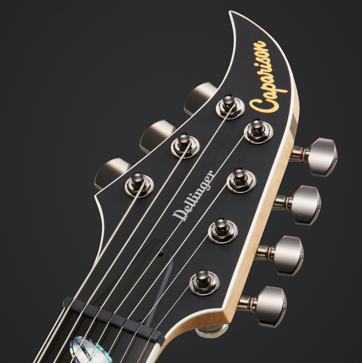 The inclusion of Jescar stainless steel jumbo frets further enhances the discernible clarity. The new Dellinger7-WB-FX also features the unique Caparison designed high mass ‘Fixed Bridge7’ which effortlessly deals with a variance of string gauges and extreme tunings while maintaining stability and sonic reinforcement. This stability is further enhanced by the use of Gotoh MG-T locking tuners and a Graph Tech Black TUSQ nut.