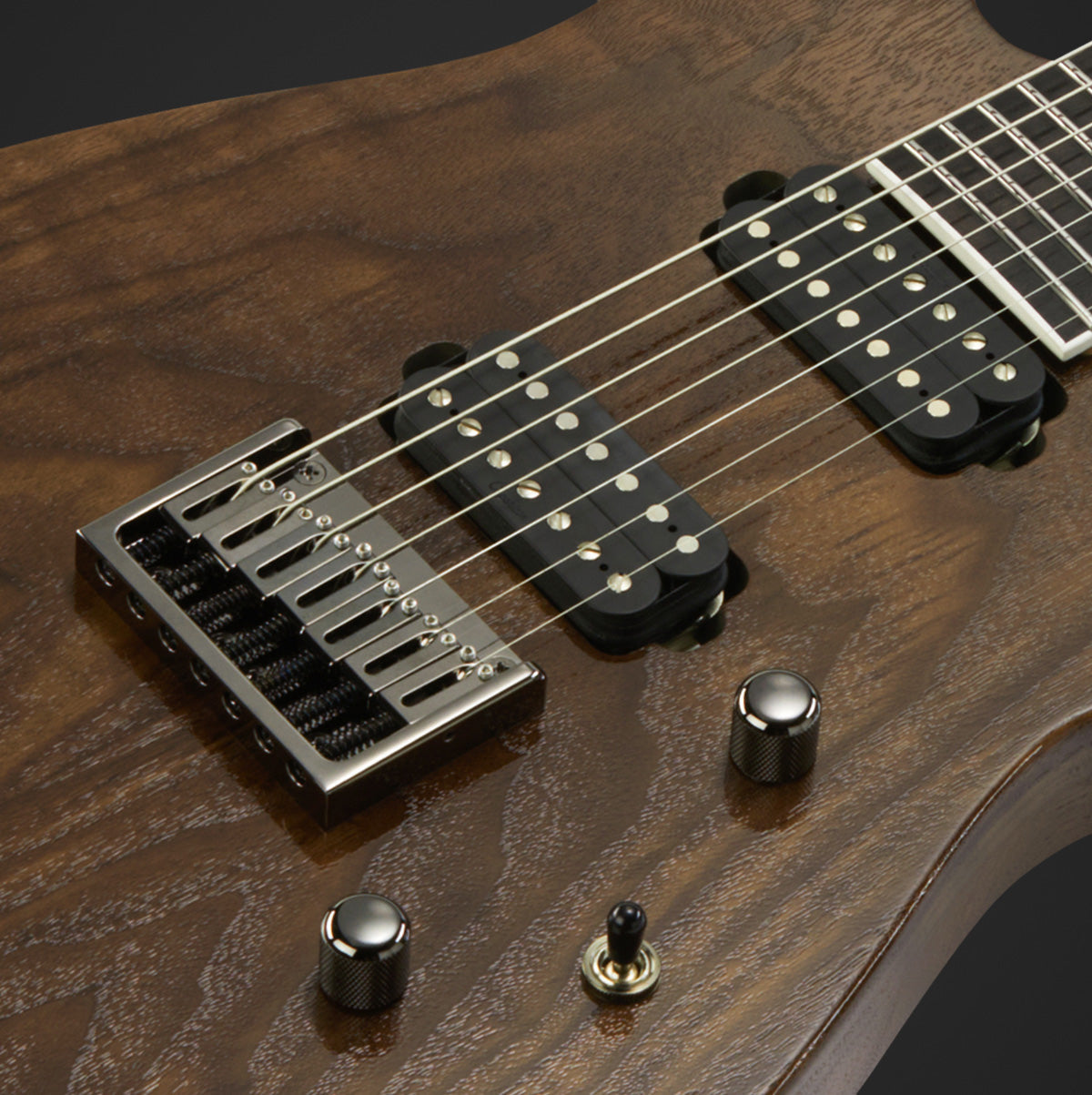 Caparison made high output PH7-bm and PH7-nm humbucking pickups adds a unique and complimentary tonal colouration to the Dellinger7-WB-FX, providing a whole gamut of timbres from an ultra aggressive growl to the sweetest bell-like harmonic cleans. A range that is further enhanced by a push-pull master tone pot, which simultaneously splits the coils in both the bridge and neck pickups, providing that classic single coil crisp glassy twang.