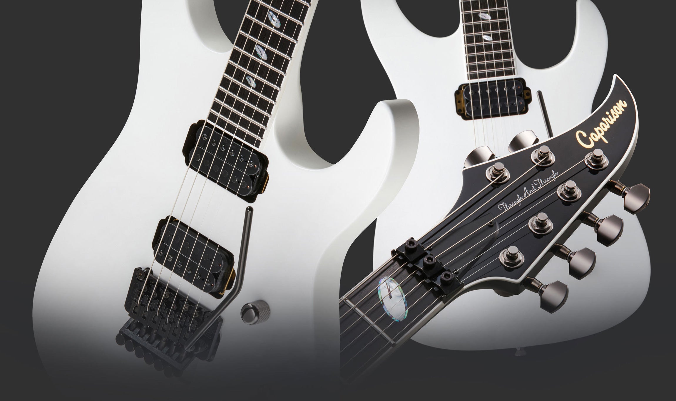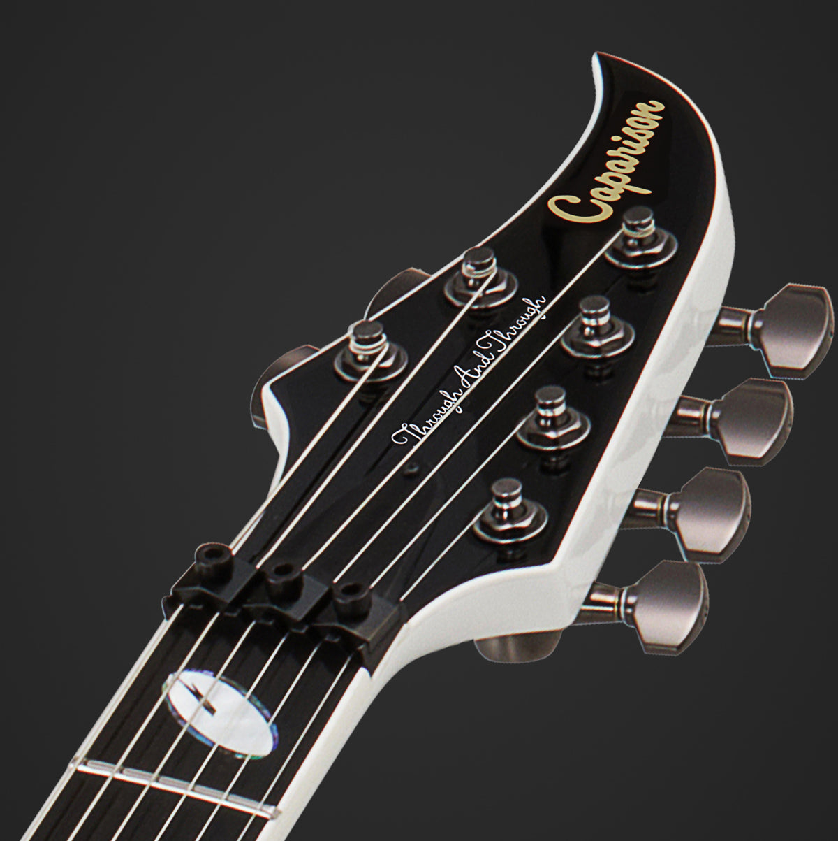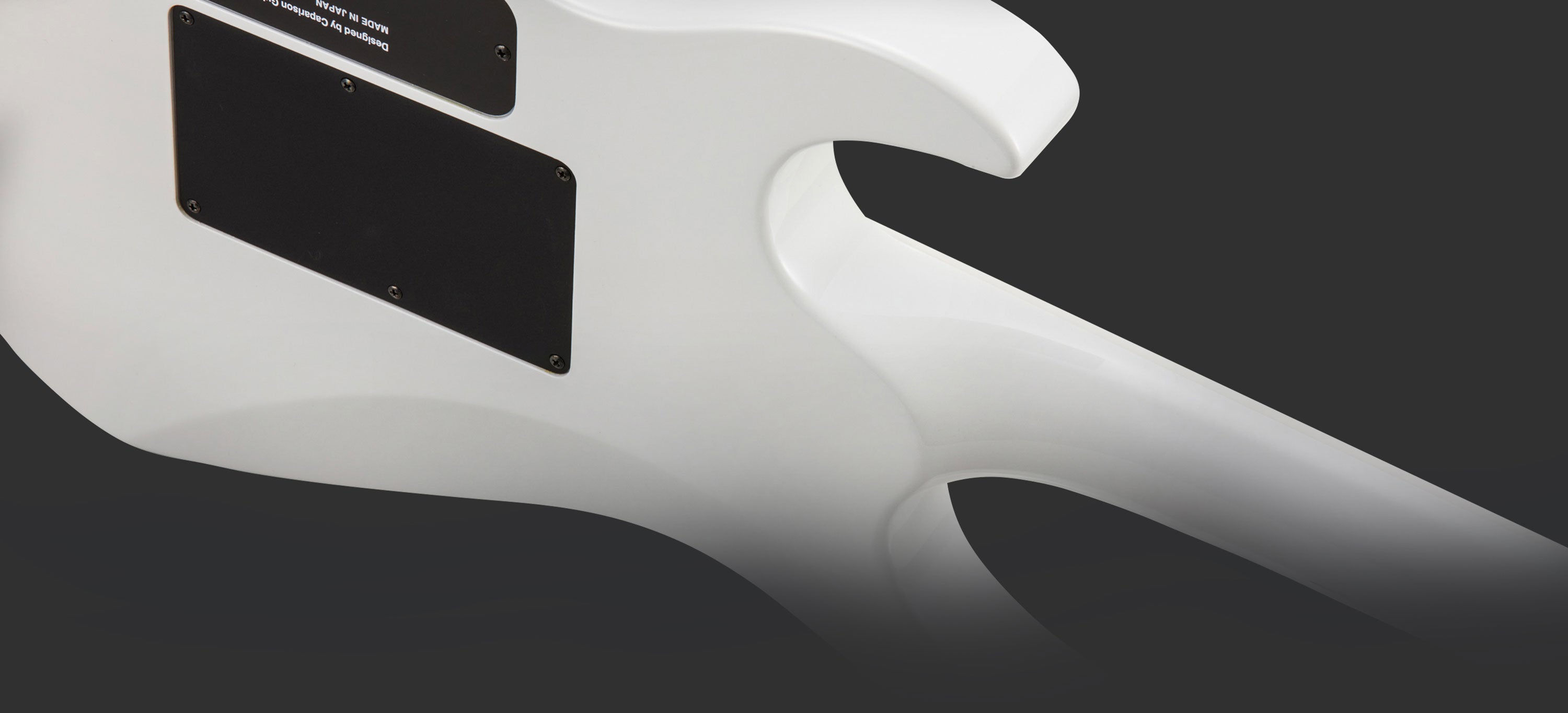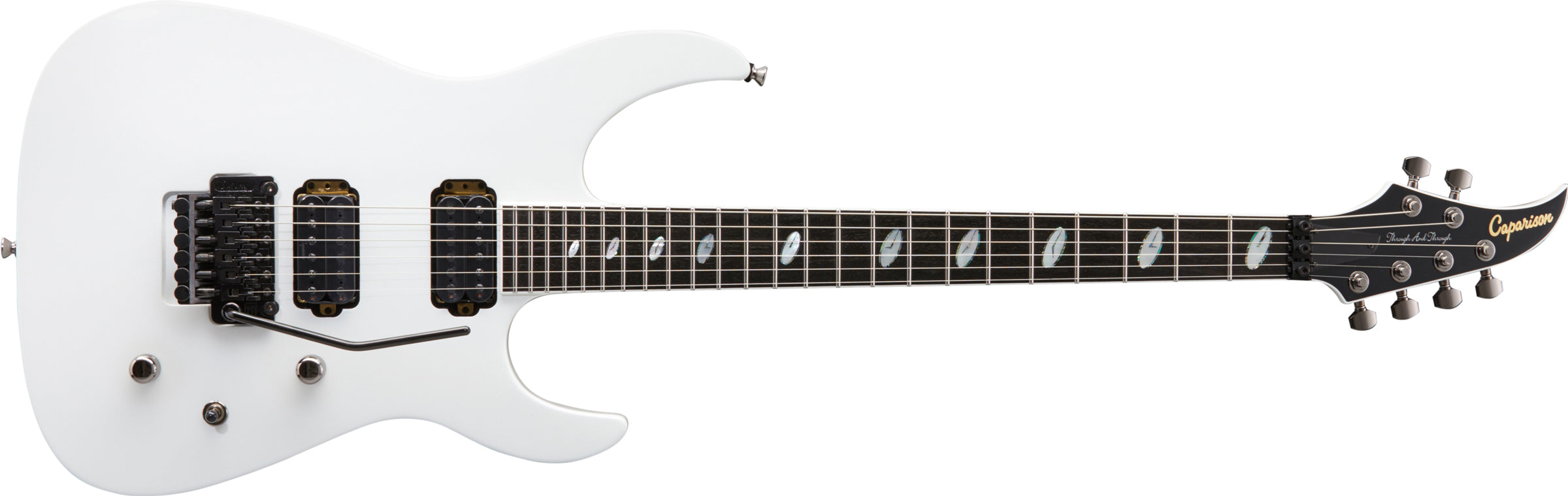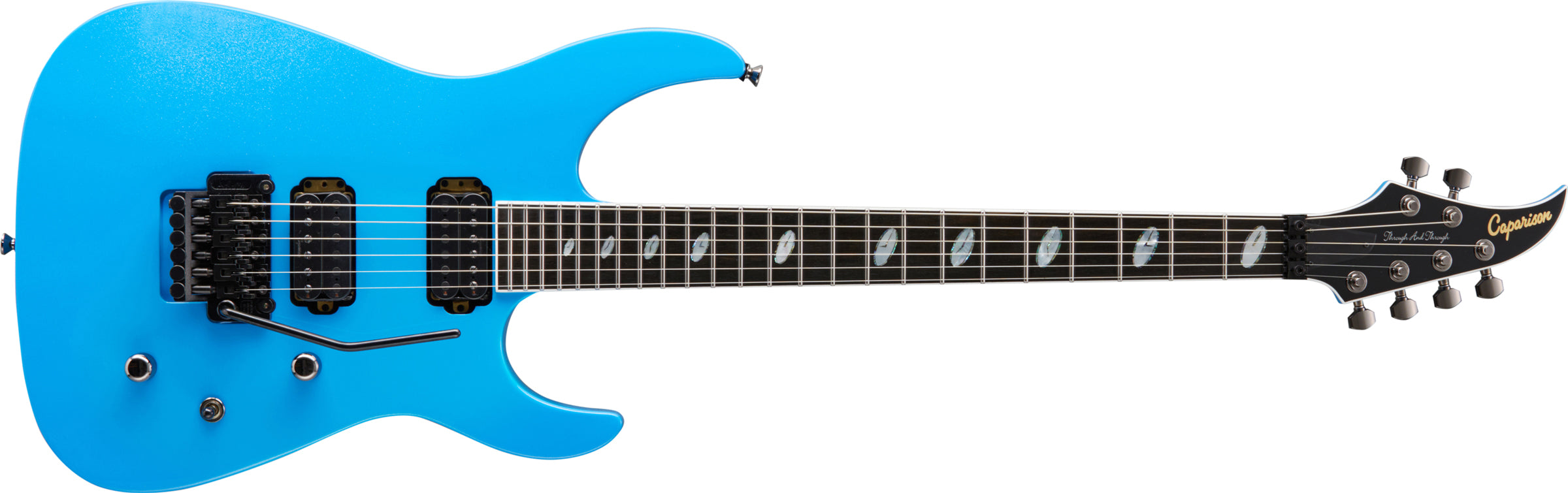 The Caparison TAT II is available in 3 finishes: “Interstellar Black”, "Frozen White" and the 1980’s inspired "Light Blue Pearl"